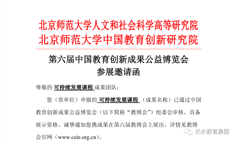 《可持續(xù)發(fā)展課程》第六屆教博會邀請函